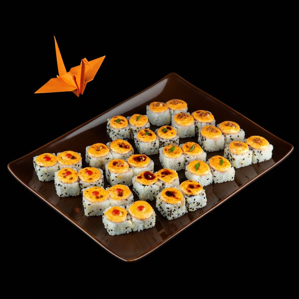 Запеченные роллы: с лососем, со снежным крабом, с окунем, с тунцом, 1020 гр.